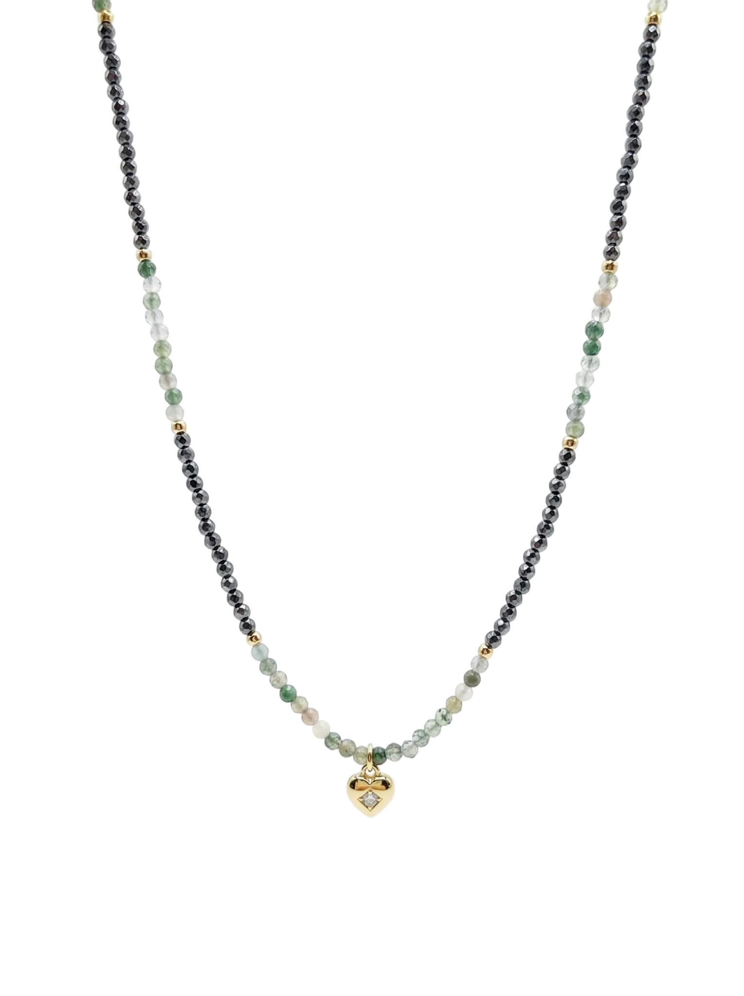 Natural Stone with Heart Charm Necklace