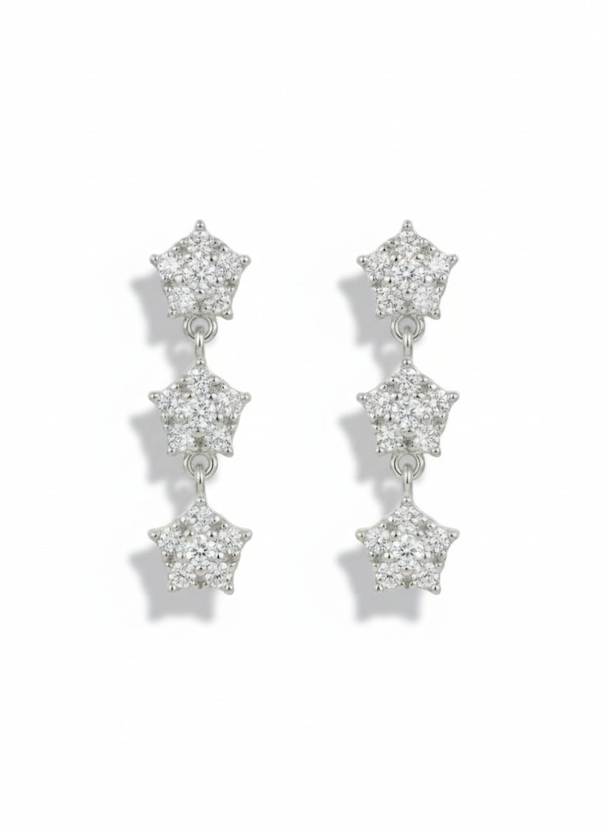 Three Flower Dangling Earrings