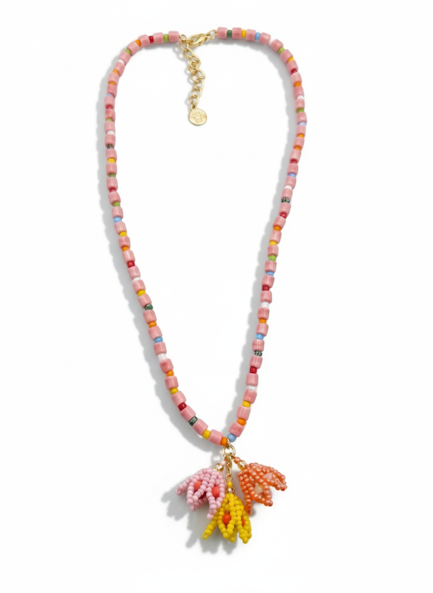 Beaded Flowers Charm Necklace